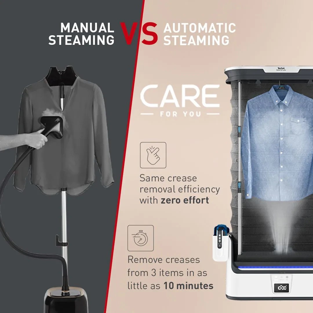 • خشگشویی درخانه: اولین بخارپز لباس اتوماتیک تفال، Care For You از نیروی بخار کاملا طبیعی برای کاهش چین و چروک، ضدعفونی و خشک کردن لباسهایتان استفاده میکند – بنابراین مجبور نیستید!